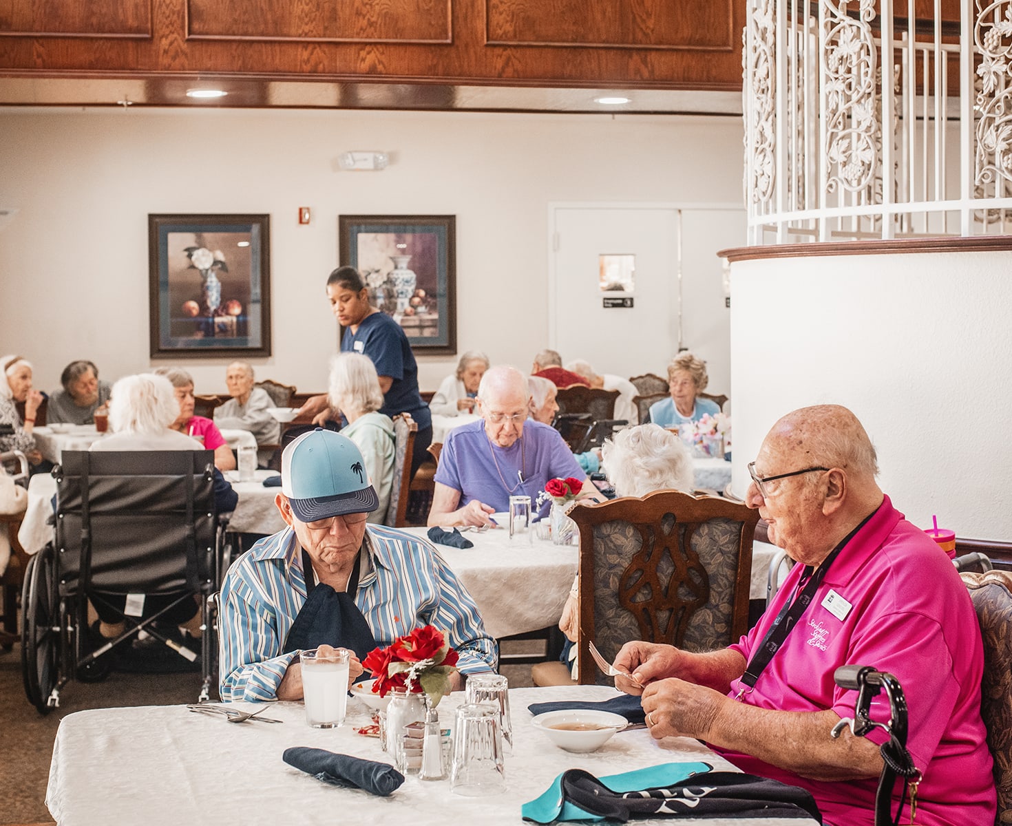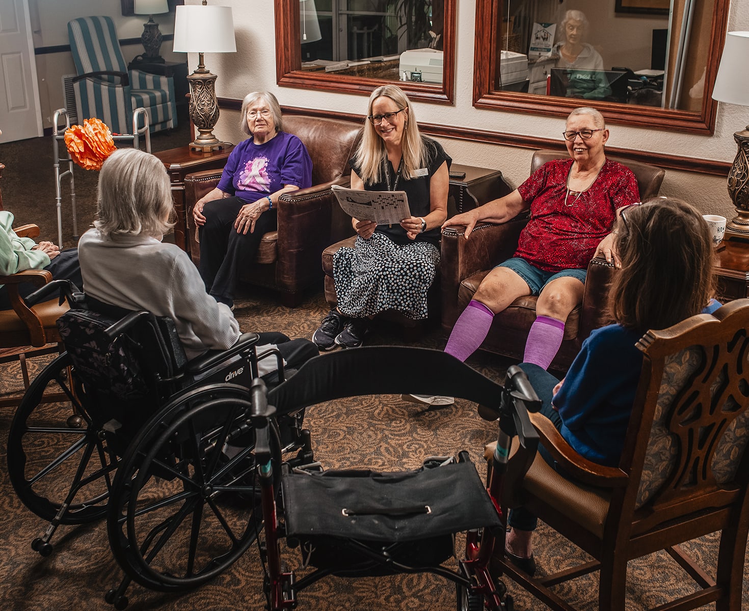 A secure, single-story neighborhood with keypad entry and a compassionate team, offering total peace of mind for families.